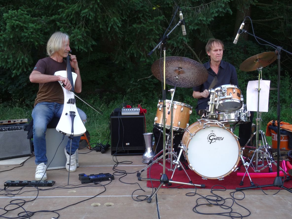 Ein elektrifiziertes Cello trifft auf eine Vielzahl spannender und unterschiedlicher Percussions- Instrumente. Und das Spiel kann beginnen.