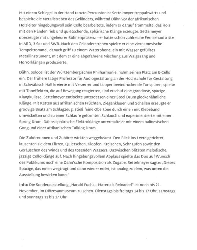 Ein Spiel mit Tönen und Rhythmen, Klangfarben und Stimmungen, spontan aus dem Zusammenspiel der beiden Musiker kreiert. Loops schaffen Strukturen, werden umspielt und wieder gebrochen, Ideen ausgetauscht im ständigen Fluss des Erfindens. Mit offenen Ohren und Gespür für ihre Zuhörer, schaffen die beiden etablierten Musiker ihre eigene musikalische Welt.