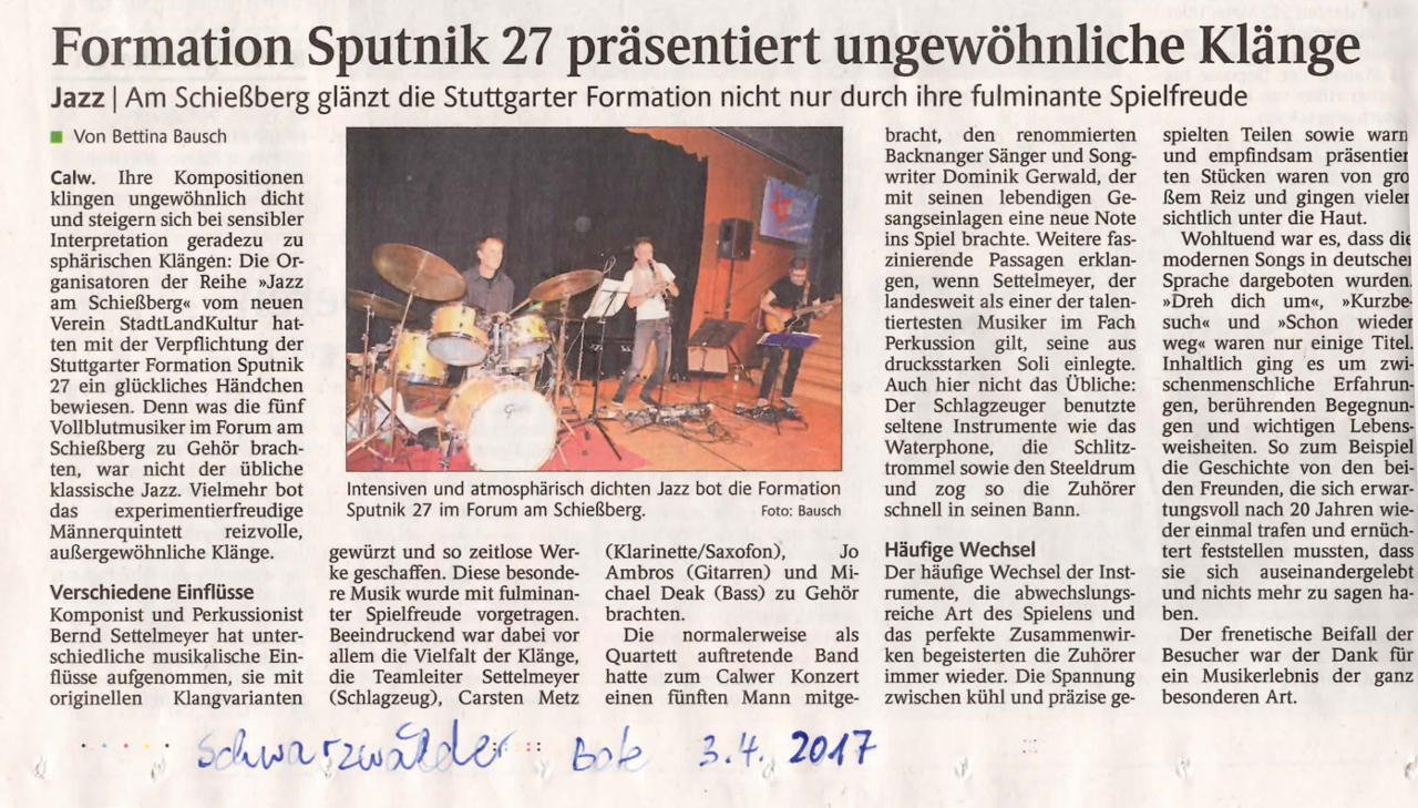 Die Konzerte von SPUTNIK 27 eröffnen seit jeher einen spannenden Kosmos an Sounds, Grooves, unterschiedlichen Stimmungen und großer Spielfreude.