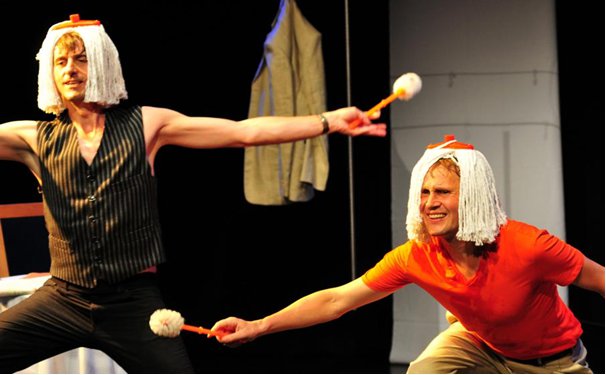 Die beiden Musiker verwandeln die Theaterbühne in ein